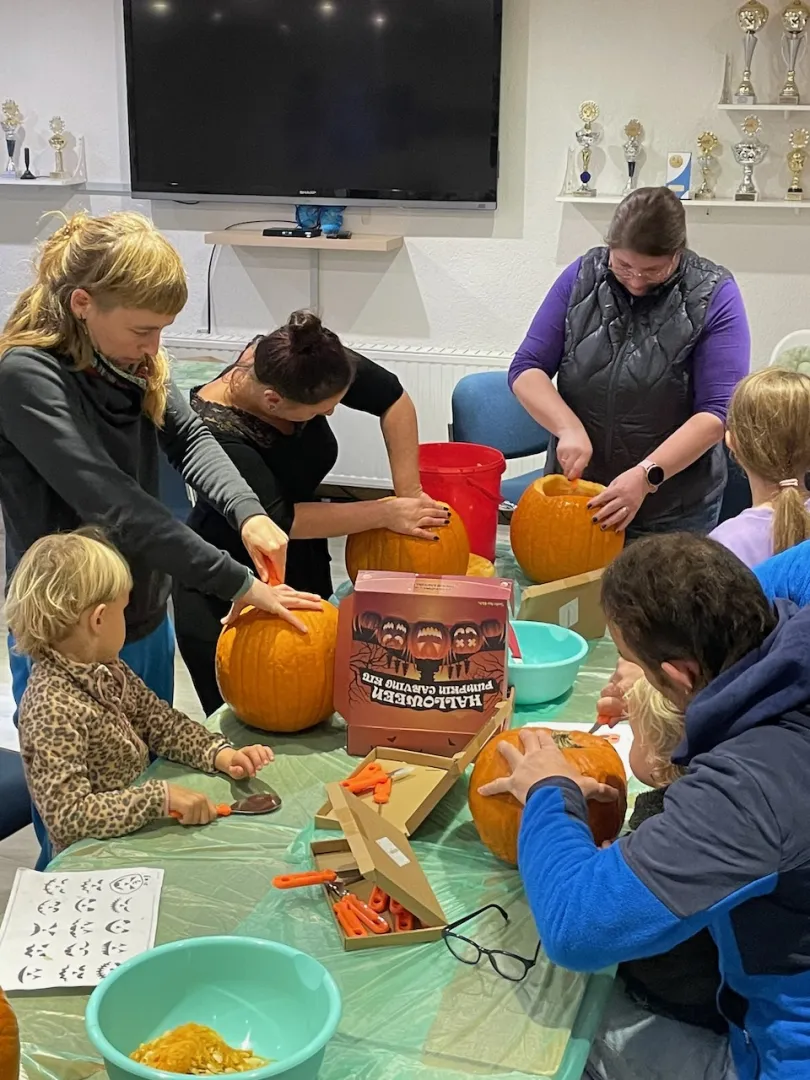 Mit viel Freude, Geschick und jeder Menge guter Ideen entstanden die unterschiedlichsten Gesichter – von gruselig über lustig bis hin zu richtig kunstvoll. Dabei stand nicht nur das Schnitzen im Mittelpunkt, sondern vor allem das gemeinsame Erlebnis. Es wurde gelacht, geholfen und bestaunt, was aus den Kürbissen alles entstehen kann.